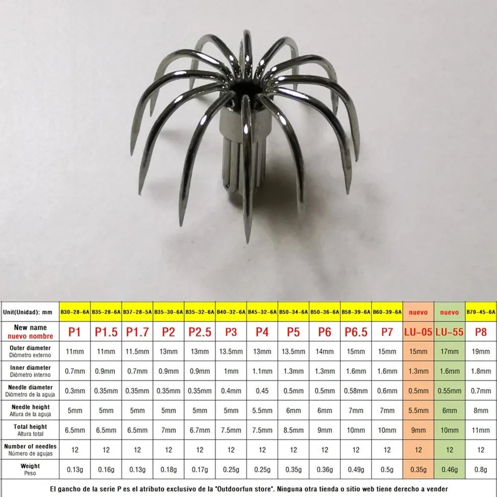Sombrilla Squid Hook Factory is a professional squid hook manufacturer, we have our own Squid Hook factory. P series squid hook is an outdoor specialty store with independent professional molds. The P series hook has a beautiful shape, similar to a semicircle, and is made of high-quality 304 stainless steel wire.