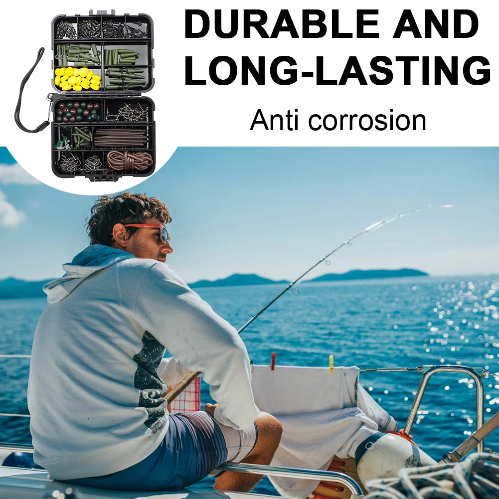 263pcs Essential Carp Fishing Terminal Box Quick Change Swivels Sleeves Hooks Stop Beads Carp Fishing Equipment Kit Gift for Men
