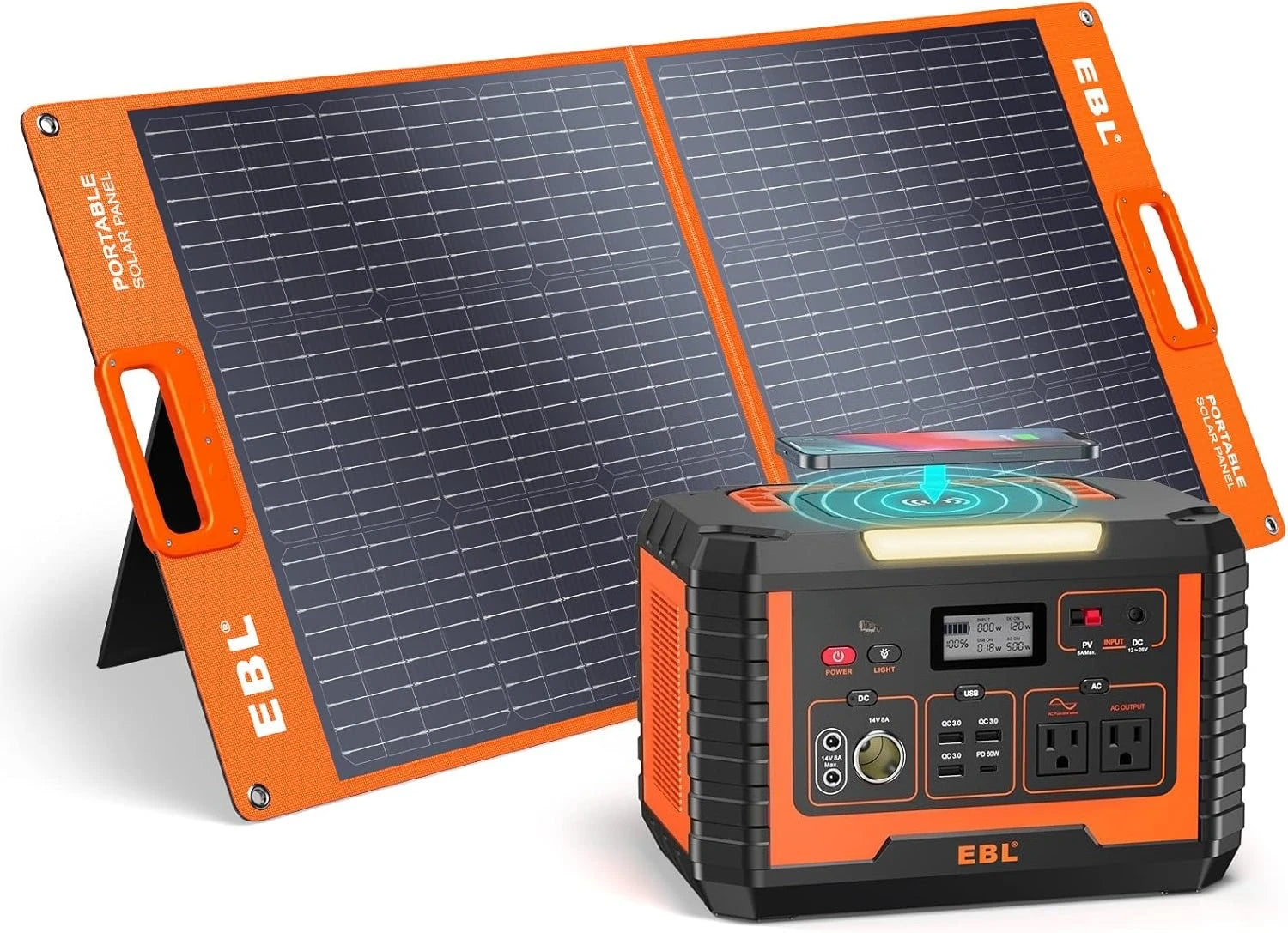 500W Portable Power Station with 100W Portable Solar Panel, Solar Generator