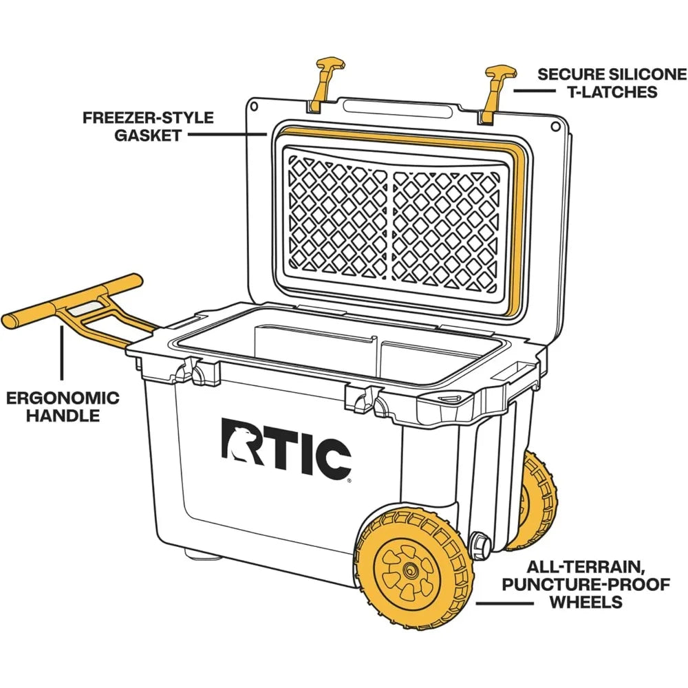 ALL-TERRAIN WHEELED COOLER – Venture into the great outdoors with confidence, equipped with the Ultra-Light insulated cooler with wheels, equipped with puncture-resistant, all-terrain wheels to effortlessly traverse through rough terrains.