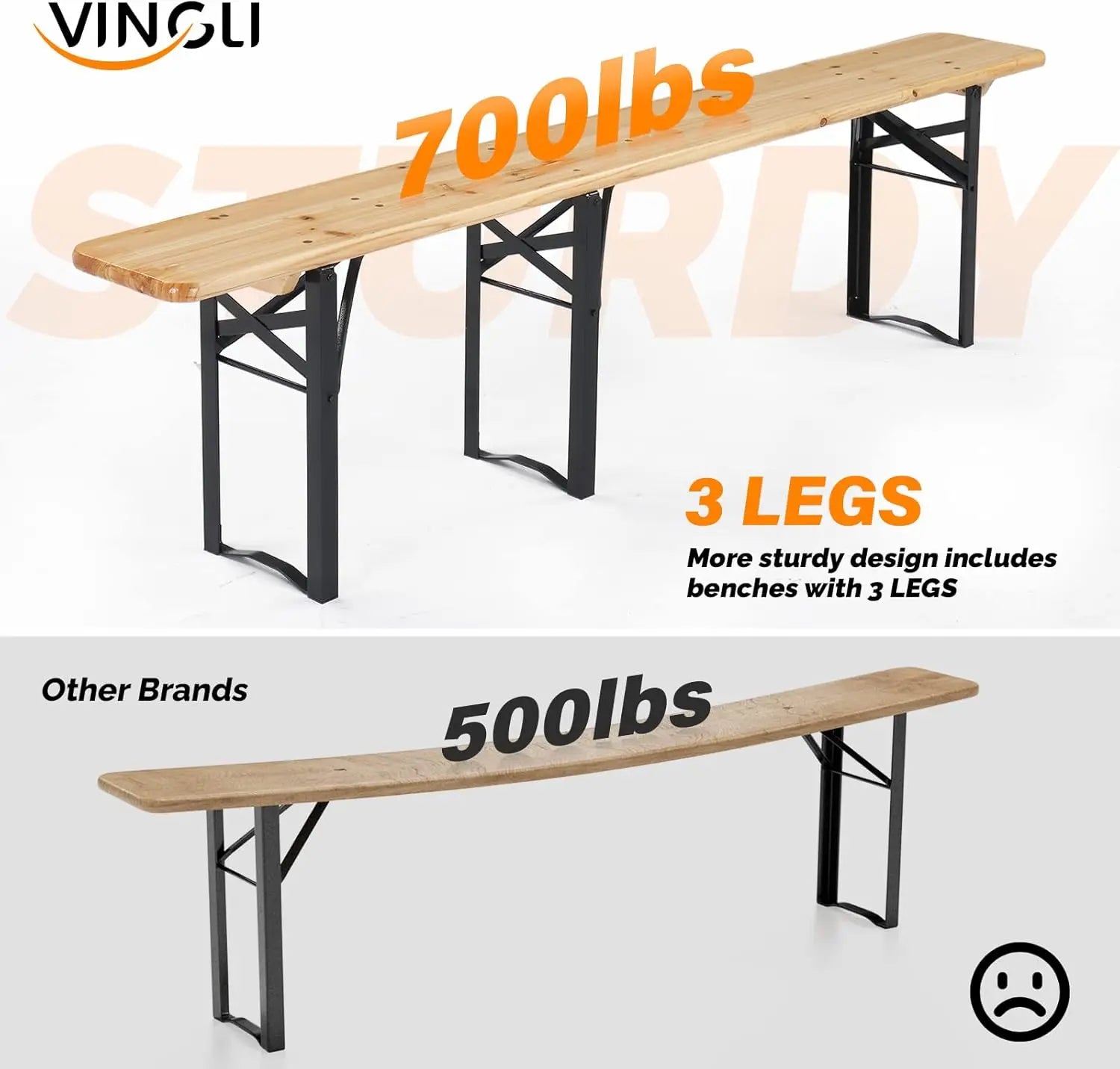 - More Stable Design - Each bench is with 3 legs which greatly increase the stability of the bench. With thicker and heavy-duty steel frame, they are more durable and sturdy.