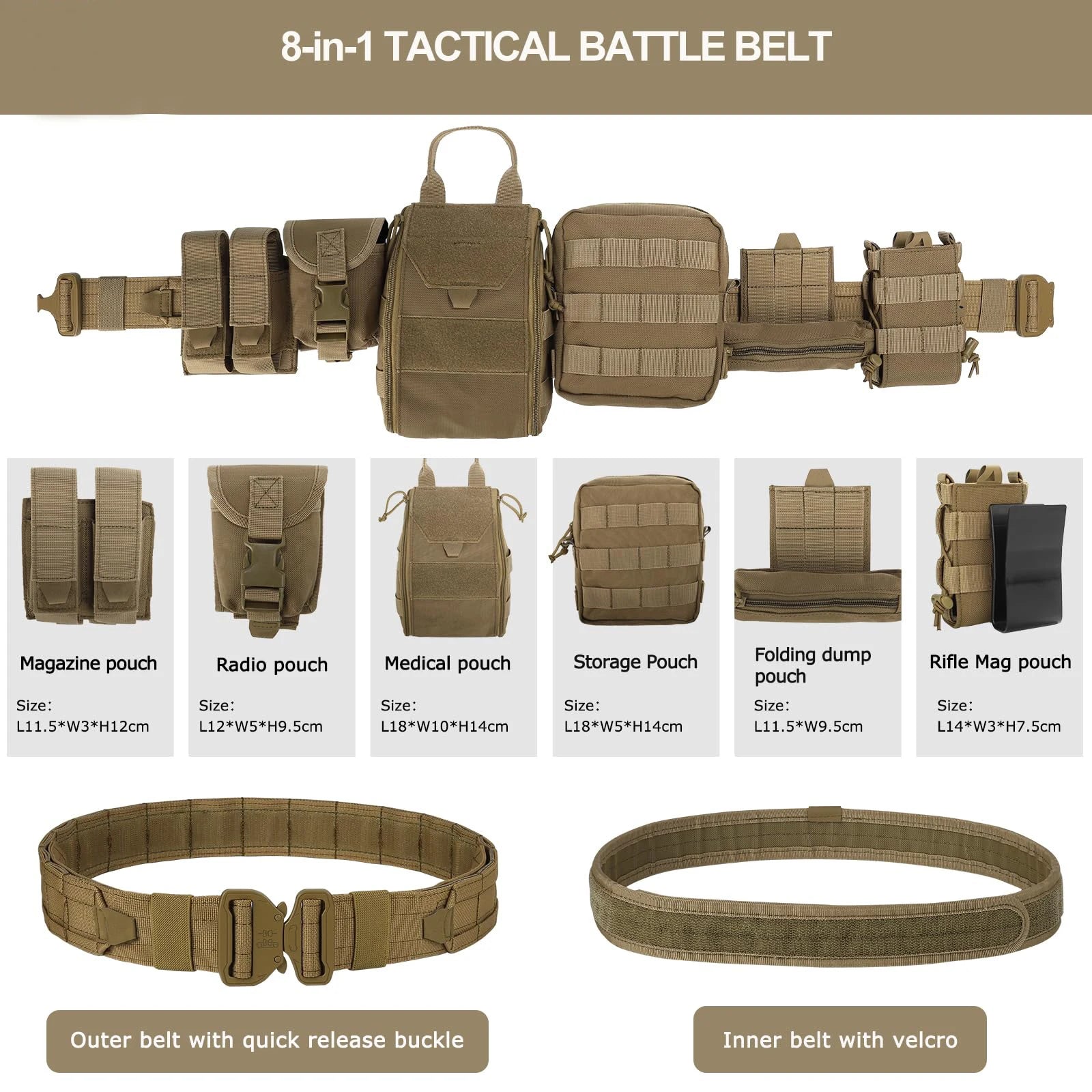 8-in-1 Hunting Tactical Battle Belt with Accessories Quick Release Heavy Duty Belts