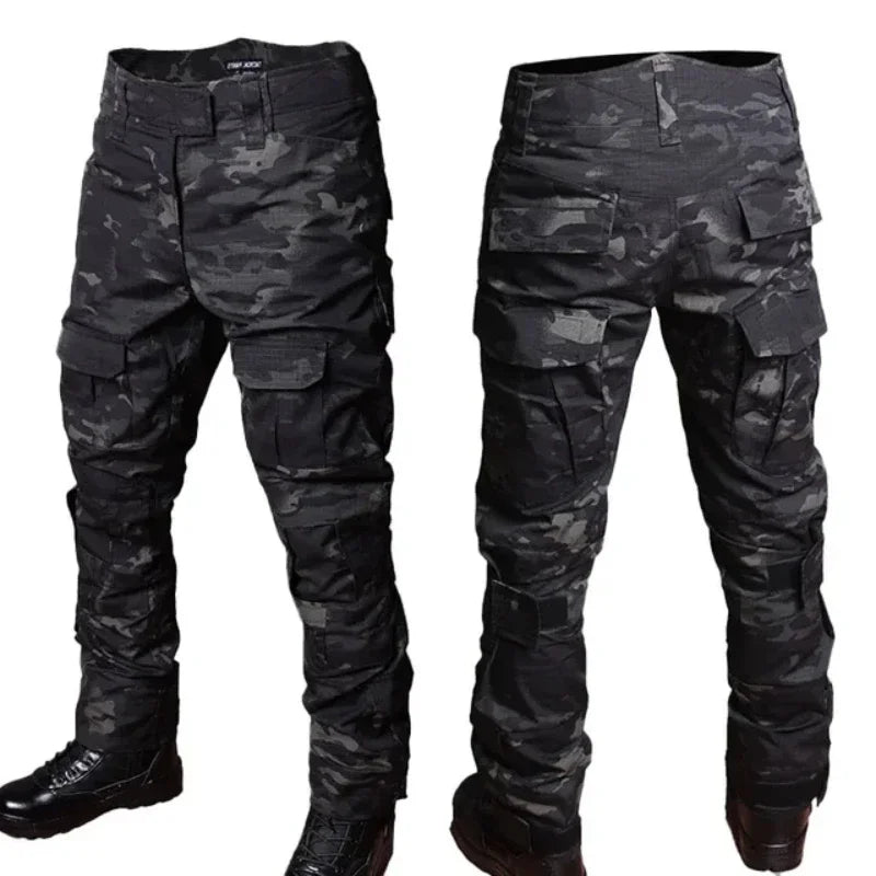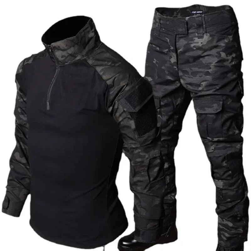 Black Camo Training Set Mens Half Zip Combat Tops Waterproof Tactical Suit Elastic Multiple Pockets Quick Drying 3-pcs