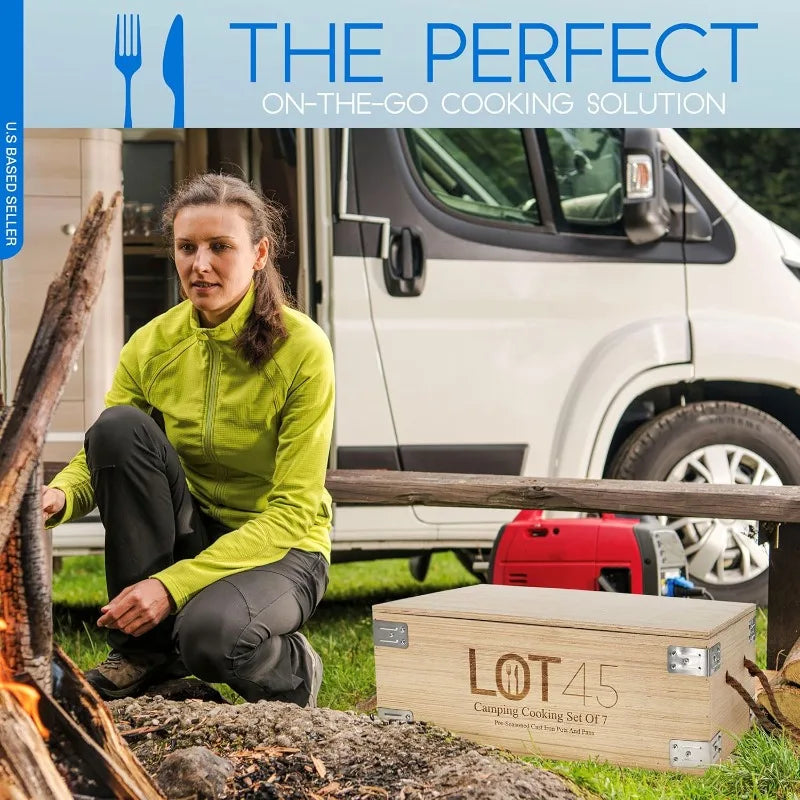 - [Meals Anywhere]: Fry and stew indoors or outdoors with the Lot45 Cast Iron Dutch Oven Camping 7-Piece Set; For all cooktops including stovetops by electric or gas heat, oven, or campfire up to 500 degrees Fahrenheit (260C)
