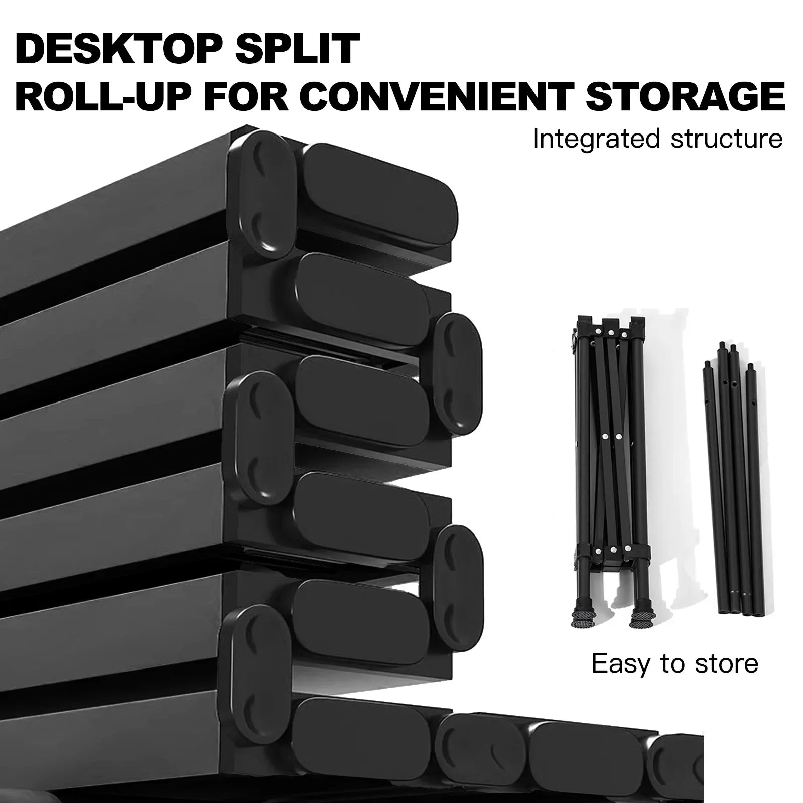 [Roll Up Camping Table]-With the split type design for the board and bracket, the portable camp side table top can be rolled up and the steel frame can be folded,so it is easy and safe to install or fold at anytime to help you save much time.It is so easy that a kid can do it!