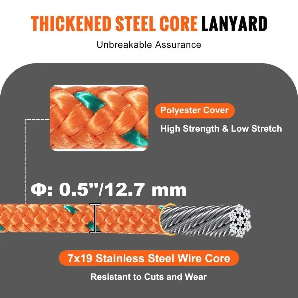 - Climb with Confidence: Secure your tree climbing work at heights with the 12 ft steel-core flipline. This steel rope boasts a durable 0.5`` diameter and a robust 25 kn breaking strength, compliance with ANSI standards, ensuring your fall protection. A must-have tool for tree climbers.