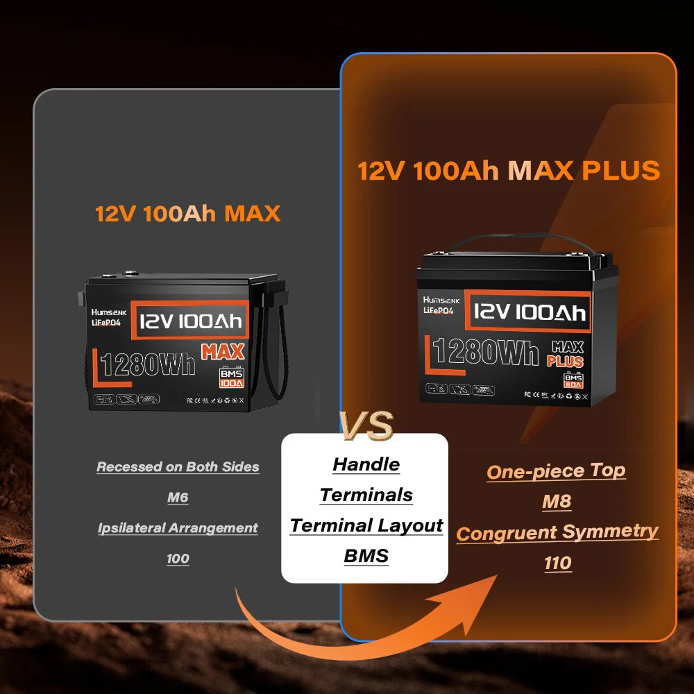 Humsienk LiFePO4 Lithium Battery 12V 100AH MAX With 100A BMS Protect Portable For Vans, RV, Golf Cart, Touring Car, Marine, etc