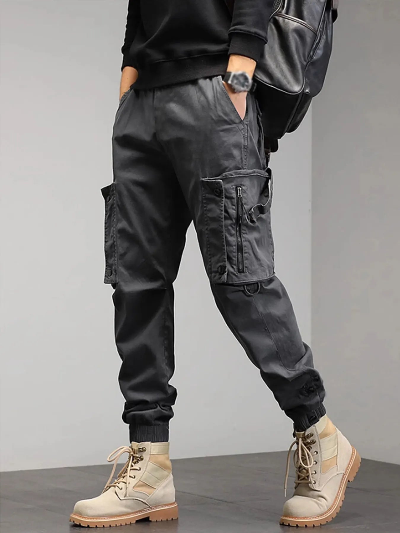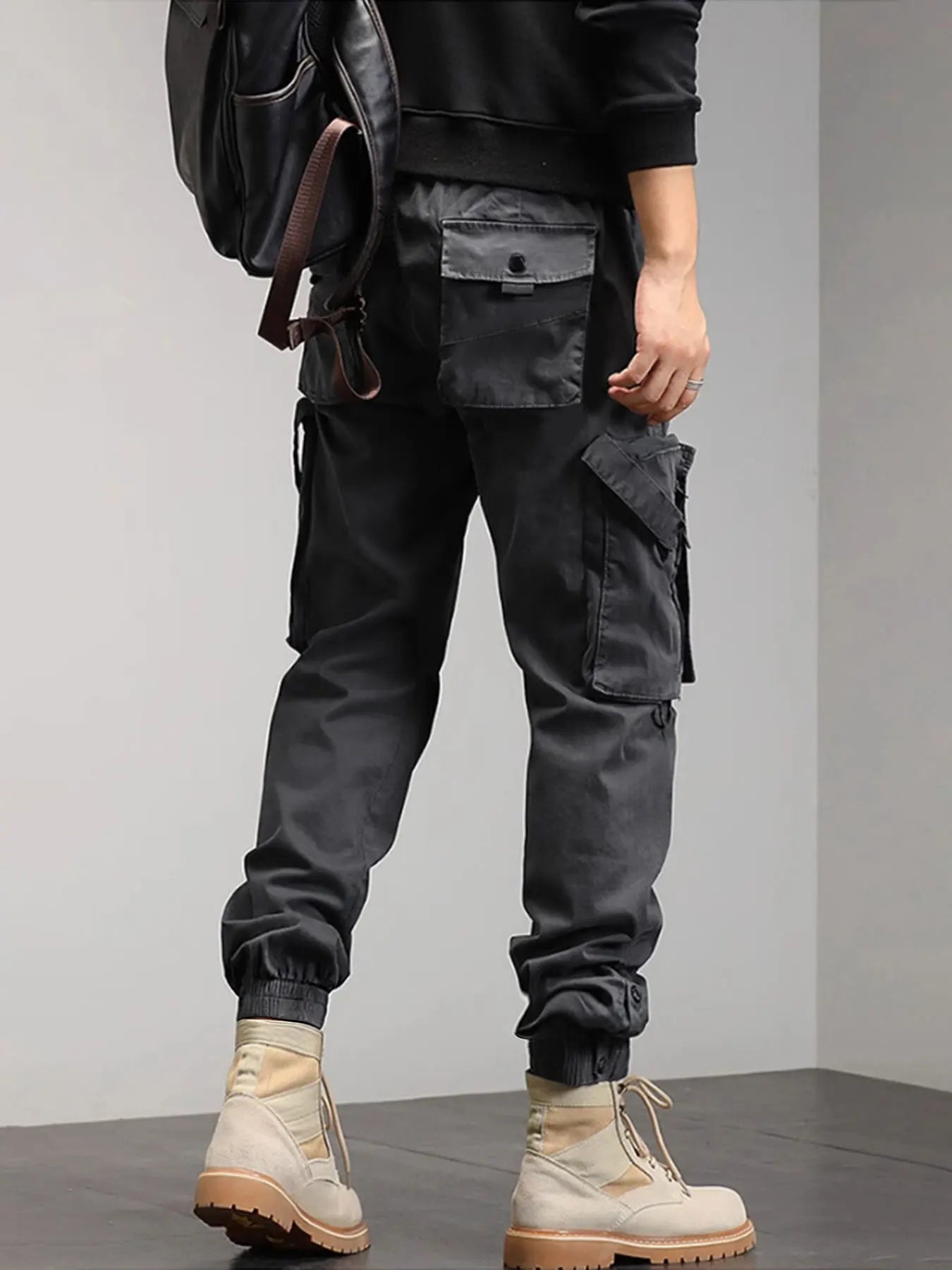 Mens Trousers Popular Casual Slim Fit Solid Color Pocket Cargo Pants Loose Wide Leg Straight Elastic High Waisted Pantalones