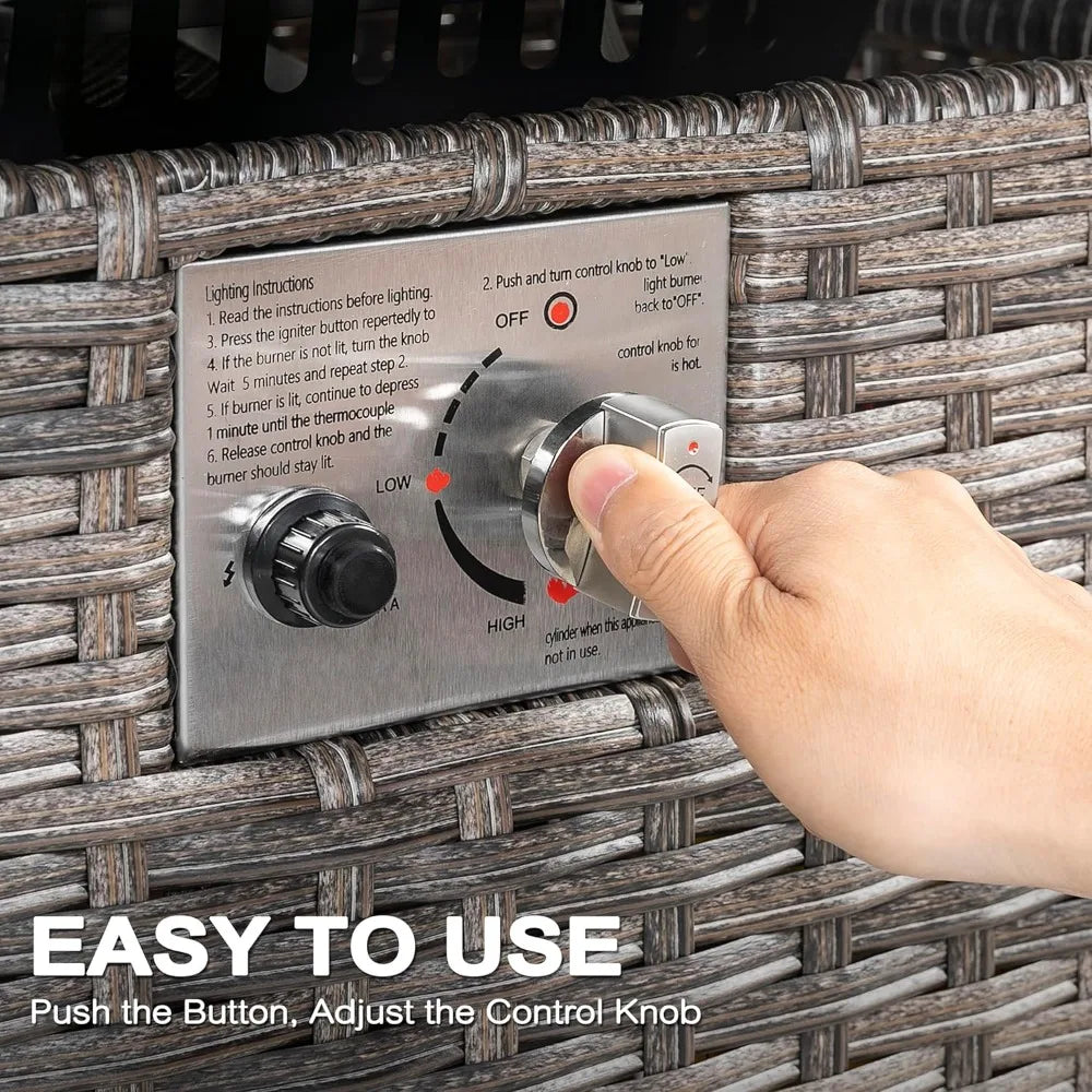 Nuu Garden Outdoor 30" 50,000 BTU Propane Gas Fire Pit Table, Square Gas Fire Pit Table with Glass Beads and Lid, Hand-Woven Wic