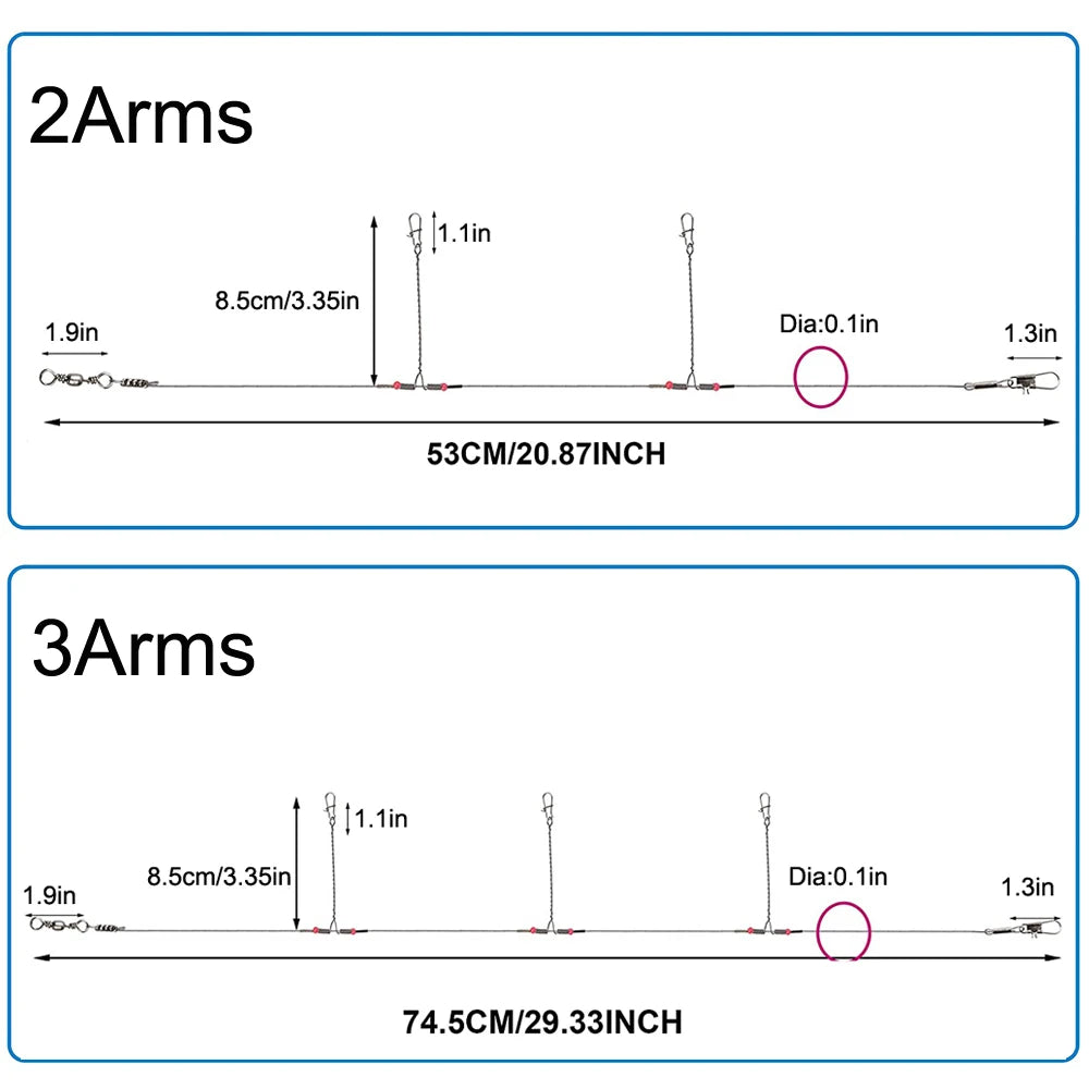 3.Stainless steel arms keep the hooks away from leader.Using for fishing lure spinner/minnow/poper/crankbait/metal spoons/sharp hook/hard lures,Ideal for nearly all bottom fishing and surf fishing