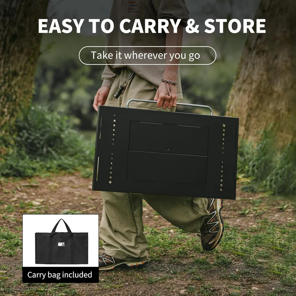 - [NOT ONLY A BBQ GRILL] outdoor BBQ grill features a unique 2-in-1 design. It’s not only a charcoal grill, but also a camping table. The multi-purpose table will play a significant role in your trip.