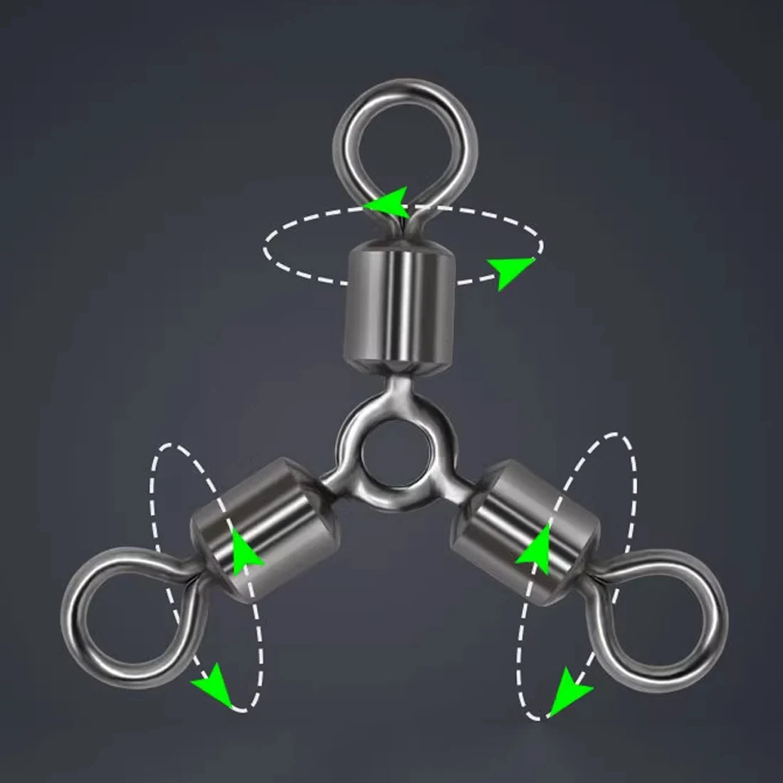 Three-Way Swivels act as a splitter for your rigs. 3 line swivels allow you to fish 2 baits on 1 line, or you can drop a sinker and free float your bait.