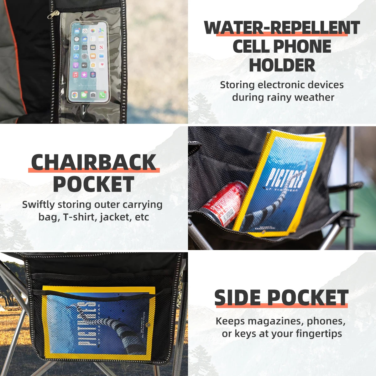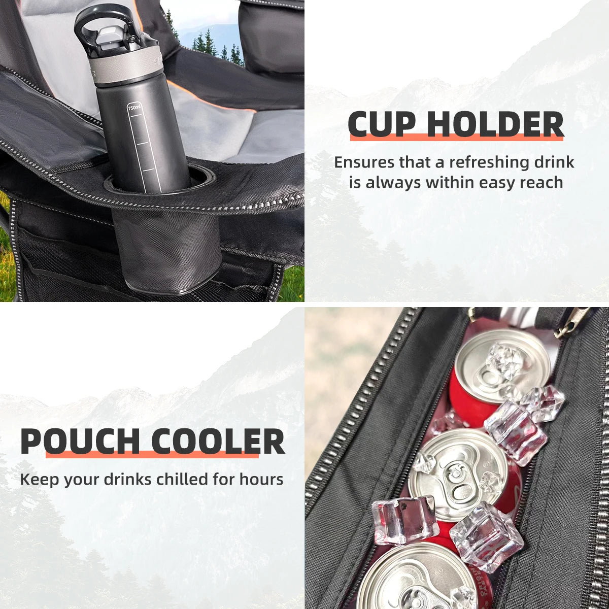 Tisetrail Oversized Camping Chair Folding Chair with Cooler Padded Outdoor Chairs Heavy Duty Support 500 LBS Black&Gray