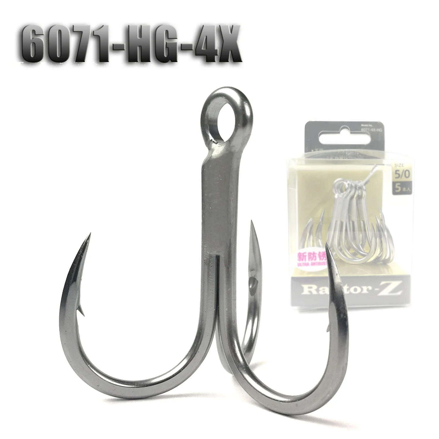 BKK Raptor-Z 6071-4X-HG Treble Fishing Hooks #5/0-#4 Sea Fishing Accessorie Anti-Rust Coating Triple Anchor Hooks For Carp Pesca