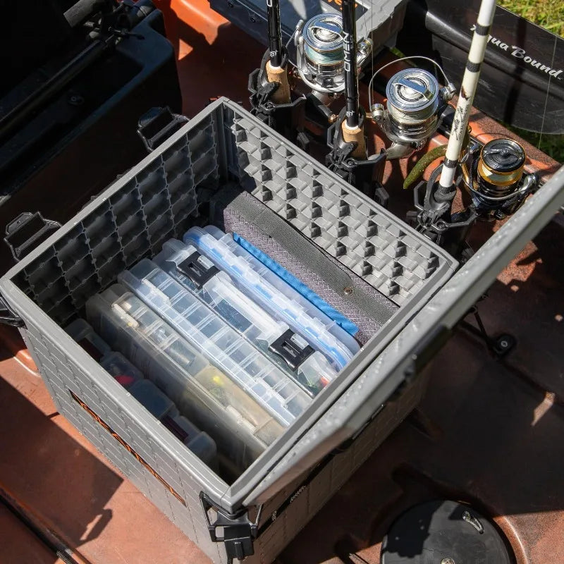 YakAttack BlackPak Pro 13" x 13" Fishing Crate with 3 Rod Holders - Battleship Grey | Compact Tackle Storage Box & Gear Organize